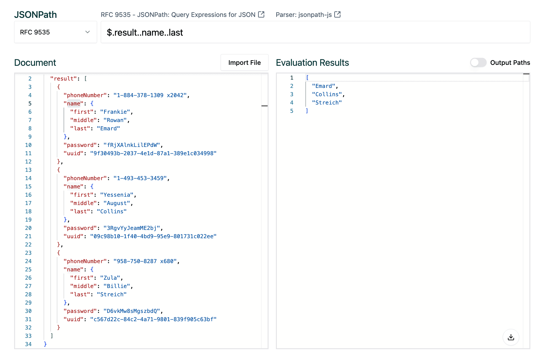 ..で更に子要素となっているデータを指定できます(今回の場合だとname、そしてlast)